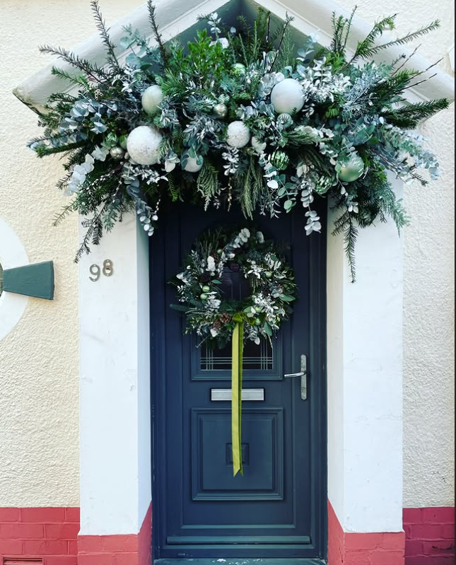 13. Framing the Door with Evergreen Garlands