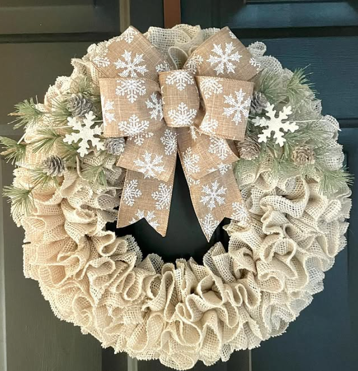 23. Subtle Neutral Winter Wreath with Snowflake Bow